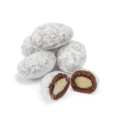 Indulge in the exquisite taste of **Almondolas**, a luxurious treat made from the finest dry-roasted almonds, expertly coated in layers of delicately spiced hazelnut chocolate and finished with a generous sprinkle of confectioner’s sugar. These decadent snacks are perfect for any occasion, making them a delightful addition to your holiday gatherings, parties, or as a thoughtful gift.